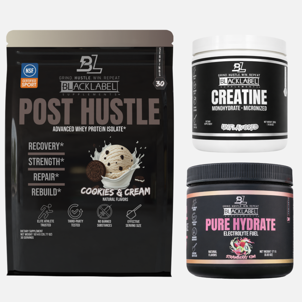 The Starter Bundle offers three essential supplements tailored for athletes beginning their training journey. It includes POST HUSTLE whey protein to support muscle recovery and growth, creatine to enhance muscle energy and explosive performance, and PURE HYDRATE to maintain vital electrolyte balance for optimal muscle and brain function. This carefully selected combination provides the foundational support needed to boost training efficiency without cluttering your supplement routine. Ideal for those seeking effective results with core nutritional essentials.